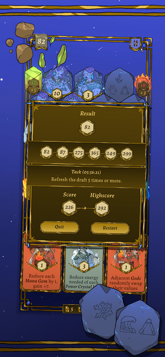Boasting well-drawn graphics and art, Geo Gods is aptly named as it features different elemental Gods. In the game, the player must wield their combined powers to grow a garden. This can be done by drafting cards and strategically placing them on the board tiles, with the end goal of activating the six Power Crystals.
